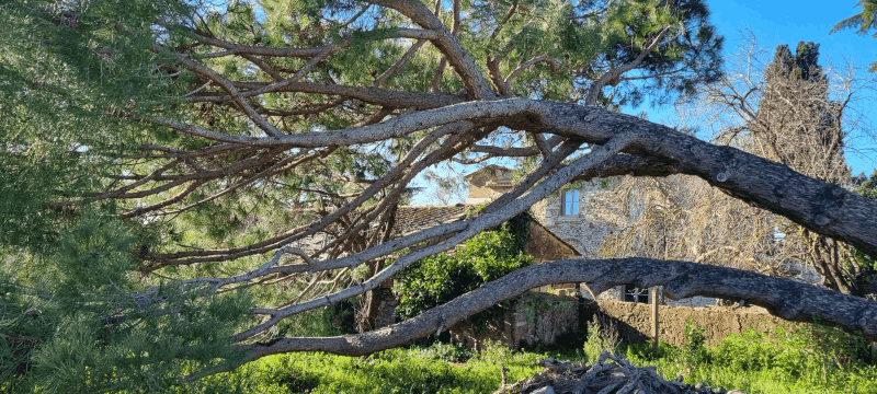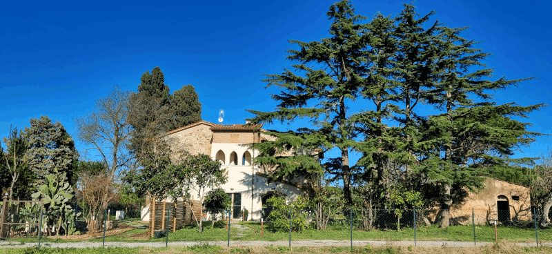 The farmhouse has been restored to operate autonomously: solar heating and electricity, well water for the garden and trees.